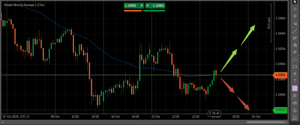 EUR/USD is testing the SMA50 dynamic resistance level. Check for reversal patterns or a confirmed breakout there.